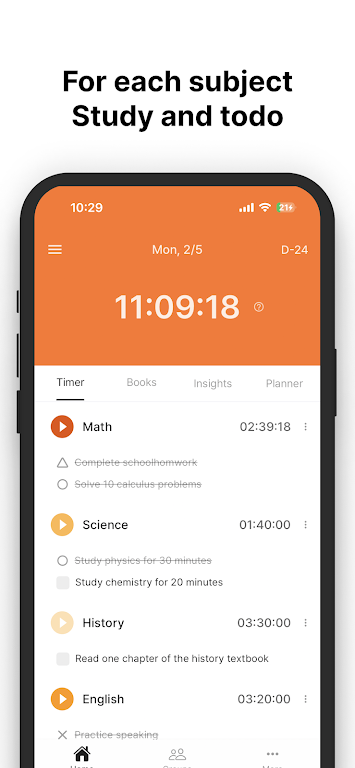 - Track study time for each subject and set todos to stay organized.