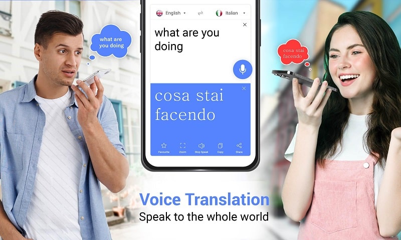 所有語言翻譯應用程序具有語音翻譯工具,該工具允許立即翻譯口語單詞。此功能非常適合在旅行,商務會議或語言實踐中進行對話,可捕獲您的演講,並準確地將其轉化為所需的語言,從而增強您的旅途溝通。