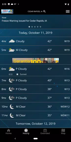 高分辨率雷達: KCRG-TV9首次警報天氣應用具有250米的雷達,為用戶提供可用於精確天氣跟踪的最高分辨率。