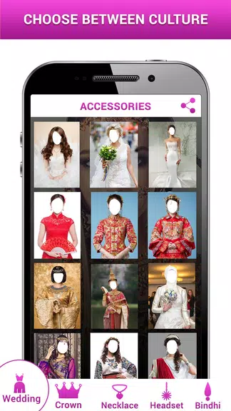 ⭐配件盛裝:除了連衣裙之外,該應用程序還提供了各種配件,包括冠,項鍊,耳機和綁定,使您可以與Flair一起完成新娘合奏。